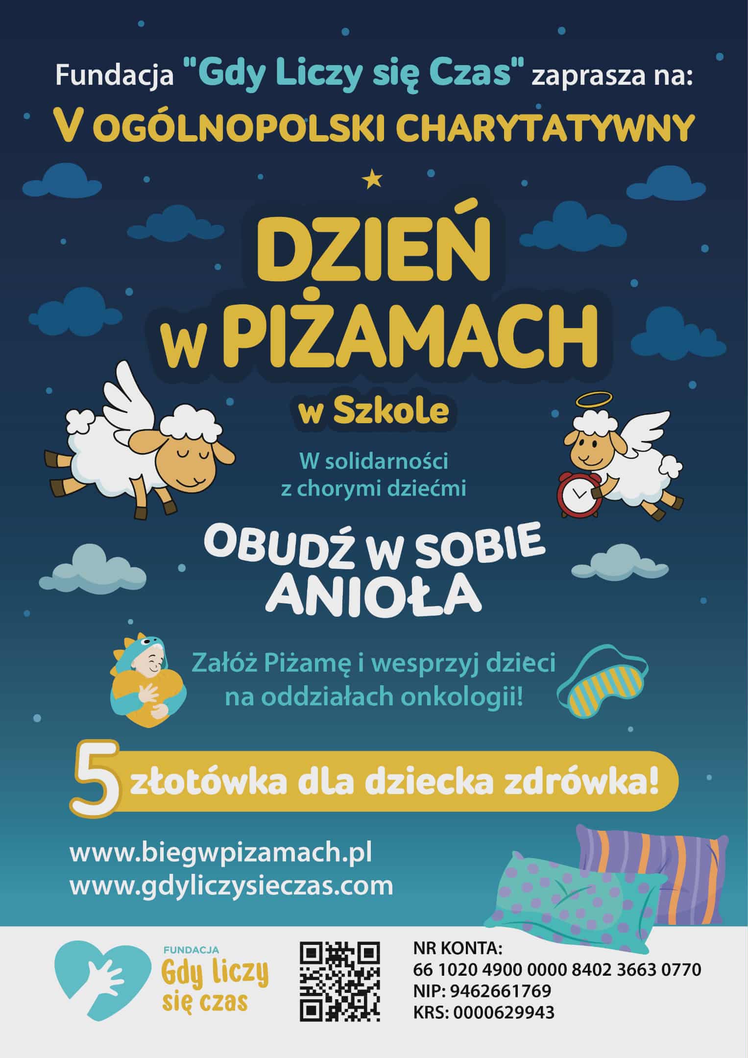 Dzień Piżamy w naszej szkole 27 października, nasza szkoła dołączyła do V Ogólnopolskiego Charytatywnego Dnia w Piżamie, organizowanego przez Fundację Gdy Liczy