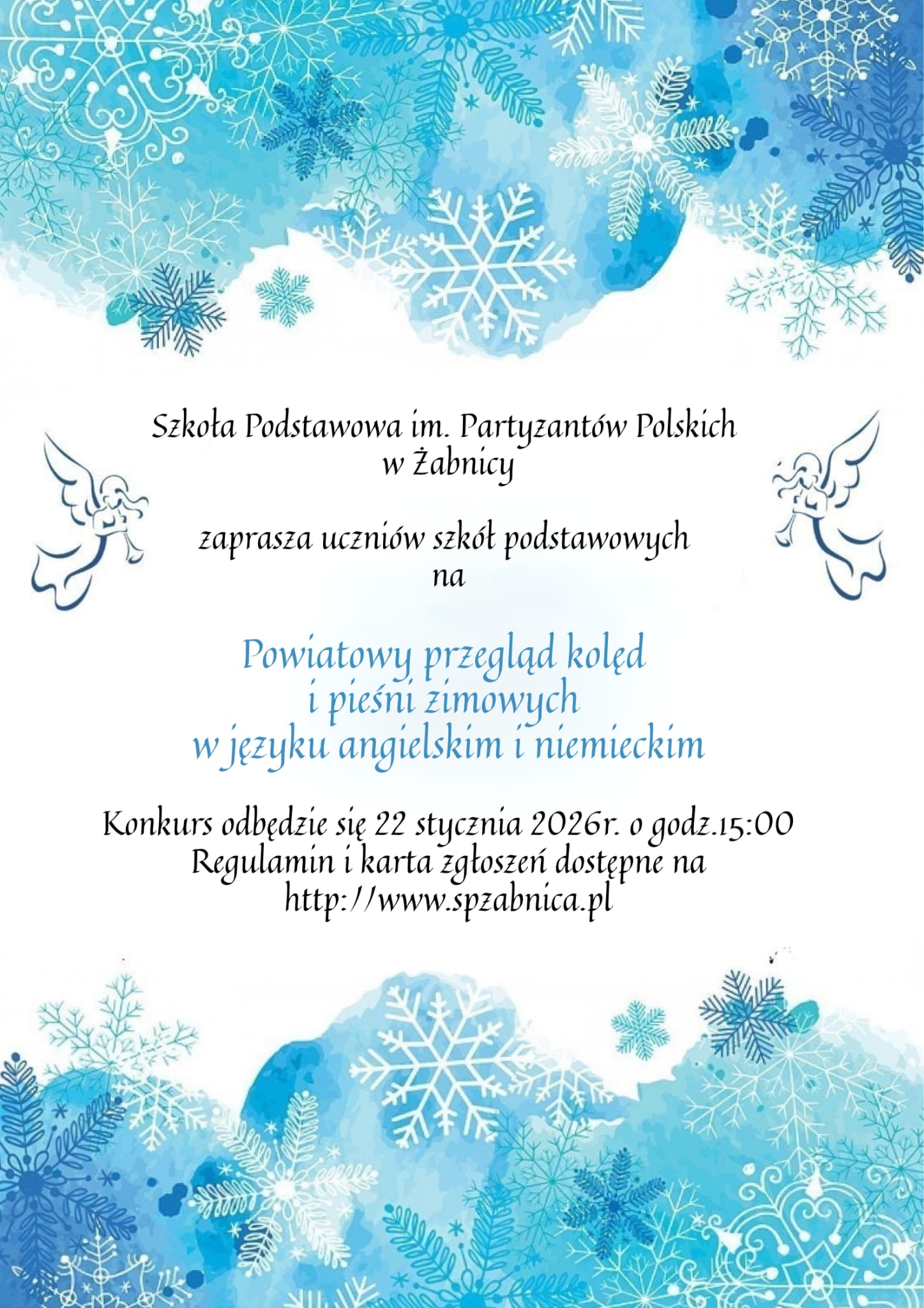 Szczegóły na : POWIATOWY KONKURS KOLĘD I PIEŚNI ZIMOWYCH W JĘZYKU ANGIELSKIM I NIEMIECKIM – SP Żabnica