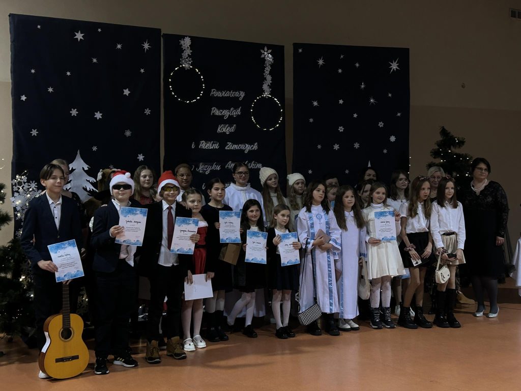 Kolejny Powiatowy przegląd kolęd i pieśni zimowych w języku angielskim i niemieckim za nami. W tym roku gościliśmy uczniów ze szkół podstawowych z Żywca, Węgierskiej Górki, Ciśca, Rychwałdu, Zwardonia oraz Brzuśnika. Poziom występów był bardzo wysoki, zarówno pod względem językowym, wokalnym jak i artystycznym. Dziękujemy wszystkim nauczycielom i rodzicom za przygotowanie uczestników. Mamy nadzieję, że za rok spotkamy się w rónie szerokim gronie. Poniżej wyniki konkursu: Język angielski – klasy IV – VI – I miejsce – Oliwia Pastor „Rocking around” – II miejsce – Hanna Biegun, Milena Drevetska „That’s Christmas to me” – III miejsce – Wiktoria Gluza „Noel” wyróżnienia: Joanna Witos „Mary did you know”, Weronika Drewniak „I still believe in Christmas” Język angielski – klasy VII – VIII – I miejsce – Aleksandra Porwisz „Silent Night” – II miejsce – Maja Ziętek „Rudolph the red nosed reindeer” – III miejsce – Amelia Tirak „Noel” Język niemiecki – klasy IV – VIII – I miejsce – Marcel Kubica „Frohliche Weichnacht” – II miejsce – Julia Kubica „Kling Glockchen” – III miejsce – Karol Gruszka „Frohliche Weichnacht”