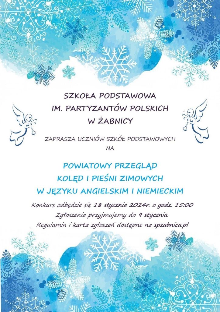 Szczegóły na POWIATOWY KONKURS KOLĘD I PIEŚNI ZIMOWYCH W JĘZYKU ANGIELSKIM I NIEMIECKIM – SP Żabnica