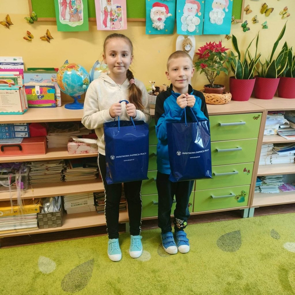 Uczniowie naszej szkoły – Malinowska Magdalena kl. IIIb – Jarco Kacper kl. Ia wzięli udział w konkursie plastycznym organizowanym przez Okręgowy Inspektorat Pracy w Katowicach pt. „Bezpieczne dziecko na wsi”. Celem konkursu jest promowanie wśród uczniów szkół podstawowych z terenów wiejskich pozytywnych zachowań związanych z pracą i zabawą na terenie gospodarstwa rolnego. Zadaniem uczniów było wykonanie pracy plastycznej obrazującej sposoby zapobiegania wypadkom przy pracy w gospodarstwie, ze szczególnym uwzględnieniem zapobiegania upadkom osób pracujących i przebywających w gospodarstwach rolnych. Uczniowie otrzymali piękne nagrody ufundowane przez Kasę Rolniczego Ubezpieczenia Społecznego, współorganizatorów oraz patronów Konkursu. Gratulujemy i życzymy dalszych sukcesów!