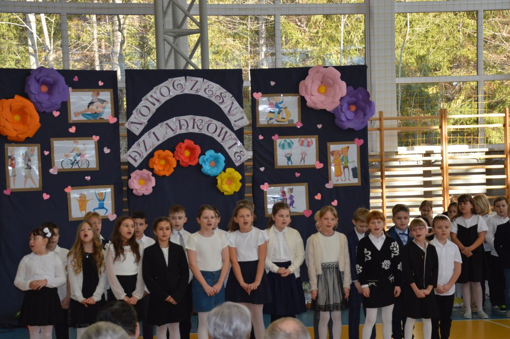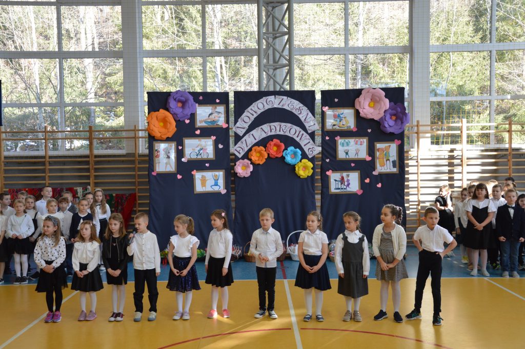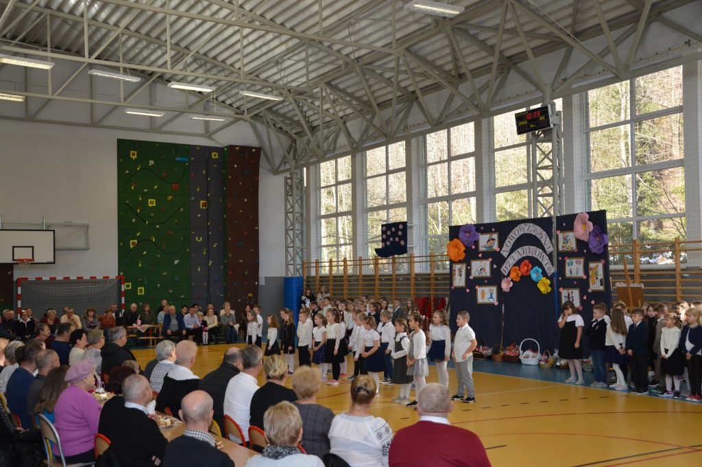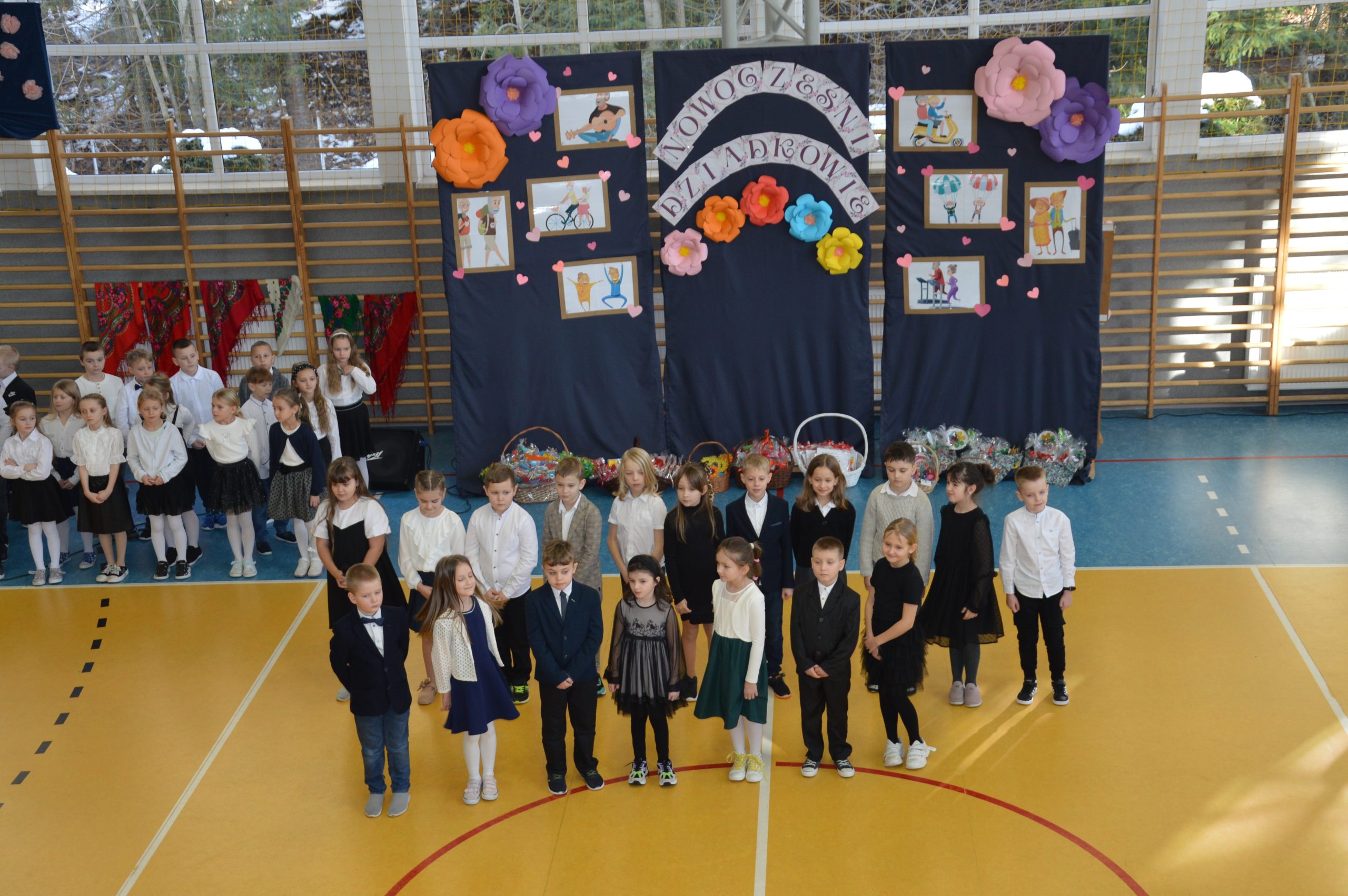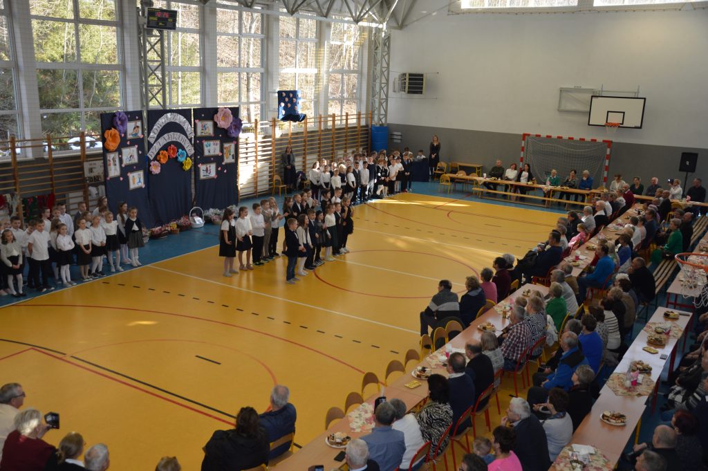 Wnuczki i wnukowie z klas I-III wraz z nauczycielami.
