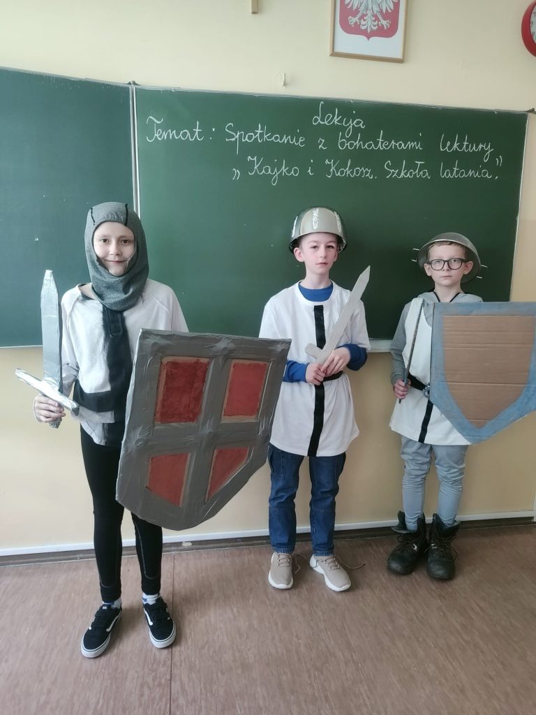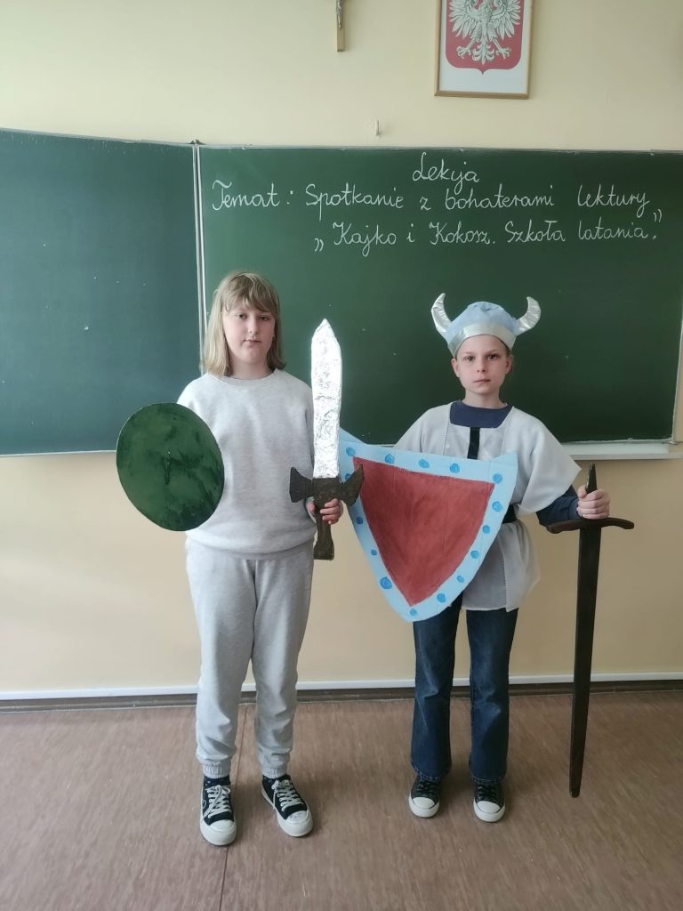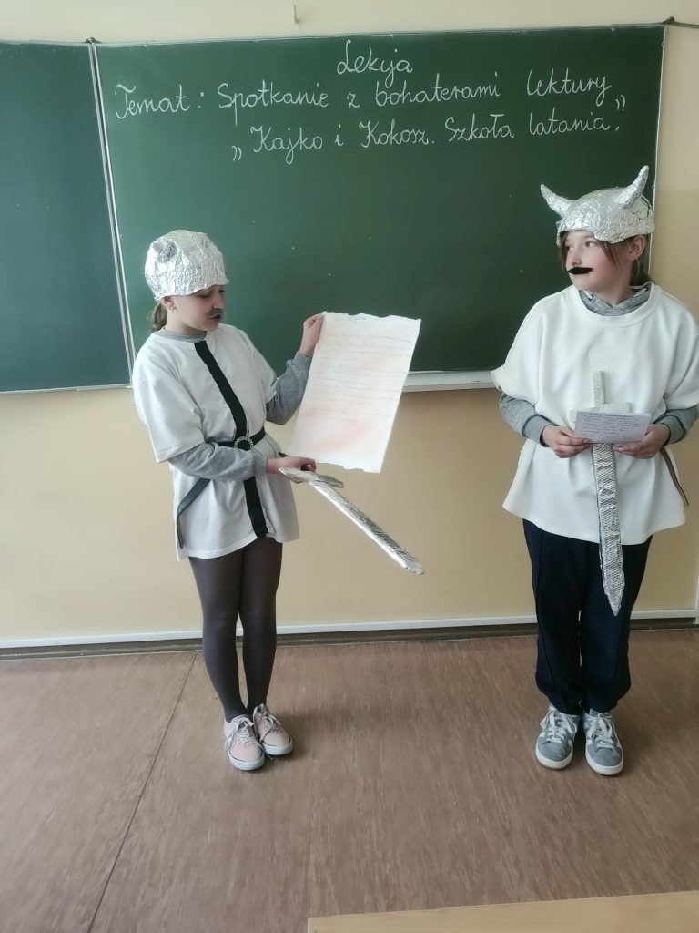 W ramach innowacji polonistycznej „Opowiem Ci moją historię” uczniowie klasy 4 a przygotowali piękne stroje i wcielili się w postaci z lektury „Kajko i Kokosz. Szkoła latania”.