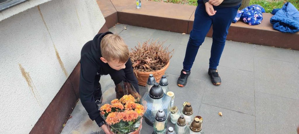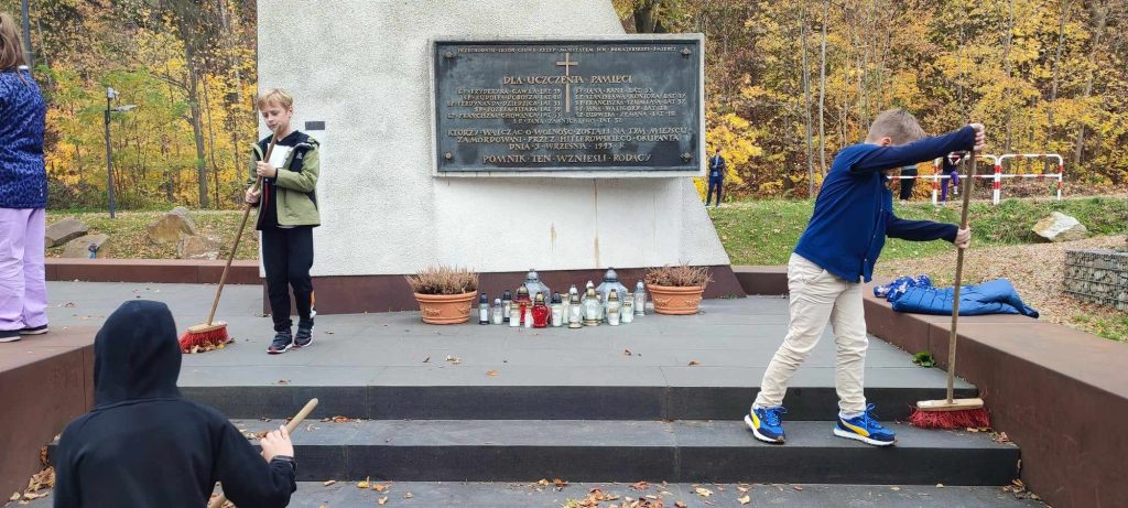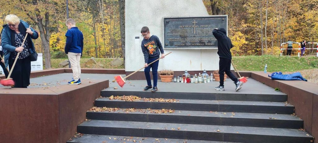 Uczniowie naszej szkoły wykonali prace porządkowe, złożyli kwiaty oraz zapalili znicze.