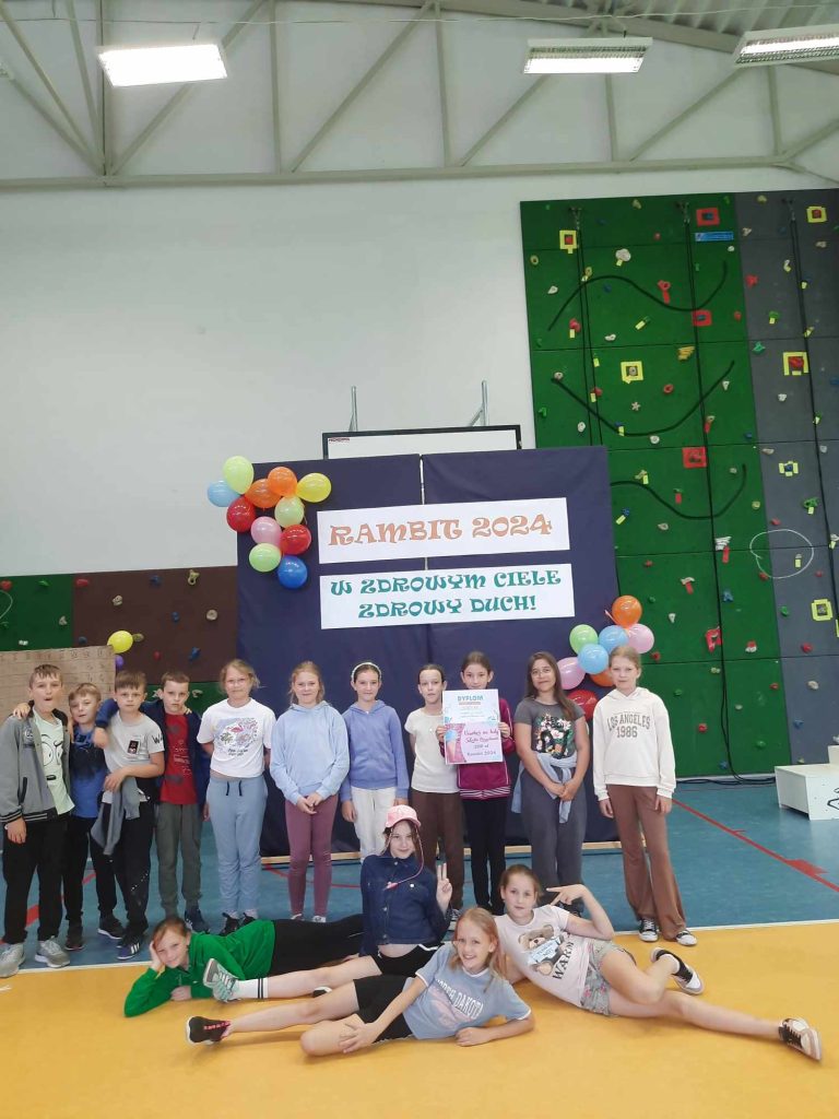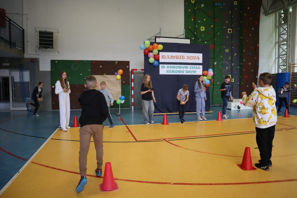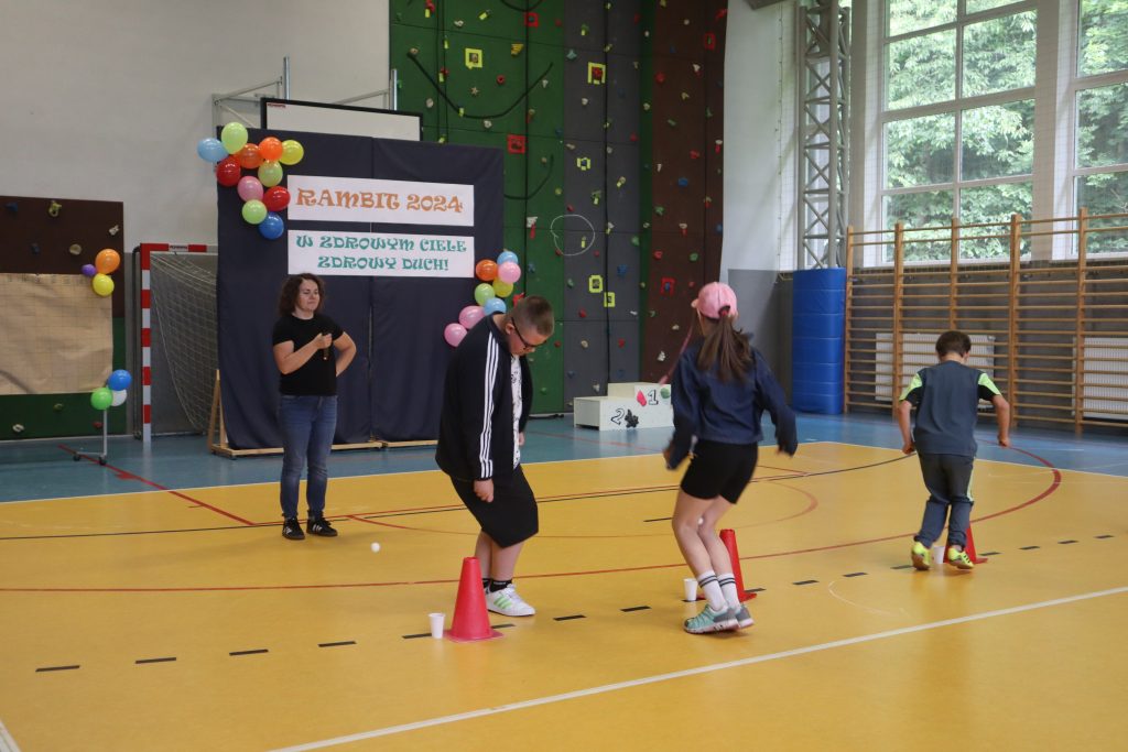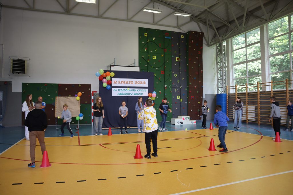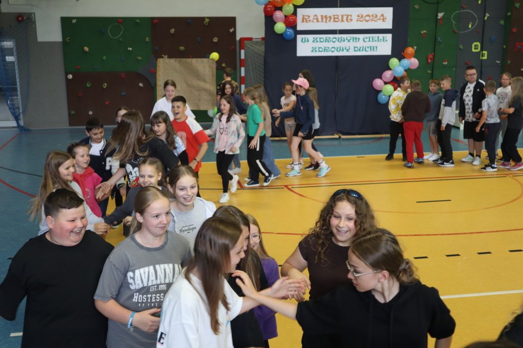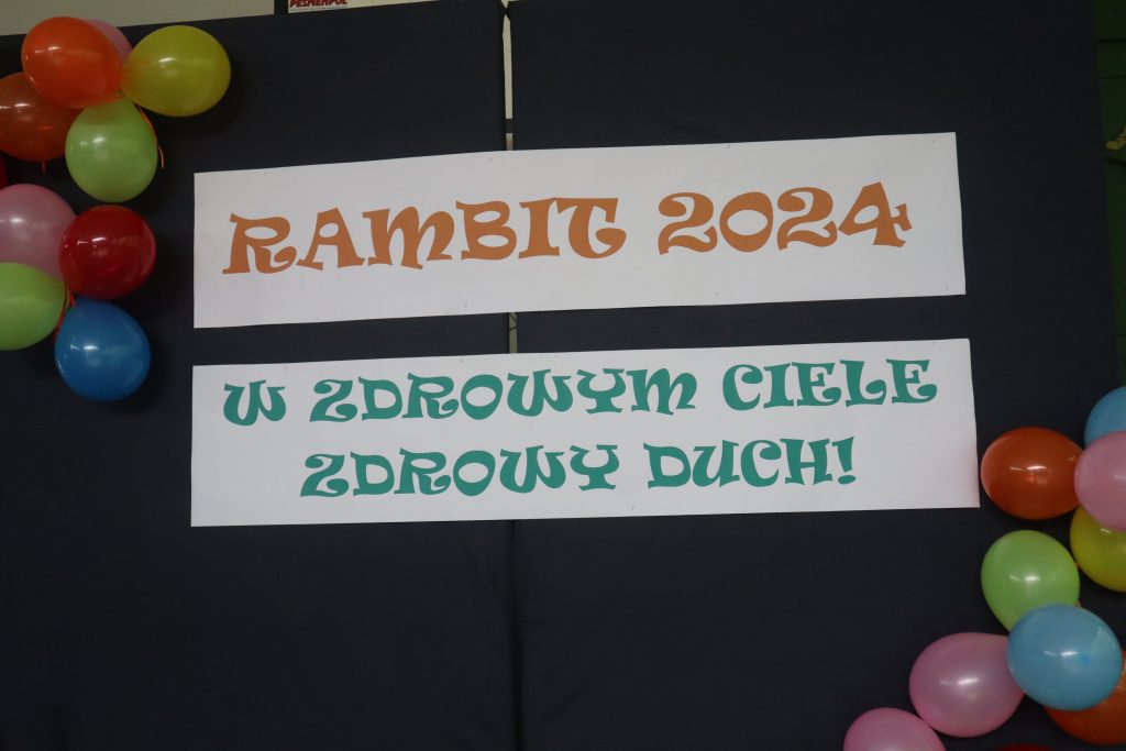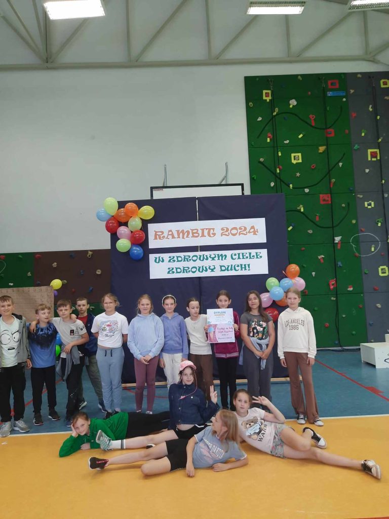 RAMBIT – zmagania sportowe z okazji dnia dziecka. W tym roku odbywały się pod hasłem „W zdrowym ciele zdrowy duch”. Chcieliśmy zwrócić szczególną uwagę na zdrowy styl życia – poprzez konkurencje sportowe, test wiedzy oraz przygotowywanie przekąsek, uczniowie dowiedzieli się że to co robimy ma duży wpływ na to jak się czujemy. Kolejnym elementem bardzo istotnym dla naszej planety jest ekologia na którą również poświęciliśmy część naszej uwagi – uczniowie przygotowywali stroje z surowców wtórnych. To przedsięwzięcie było możliwe do realizacji dzięki firmie Żywiec Zdrój, której z tego miejsca serdecznie dziękujemy.