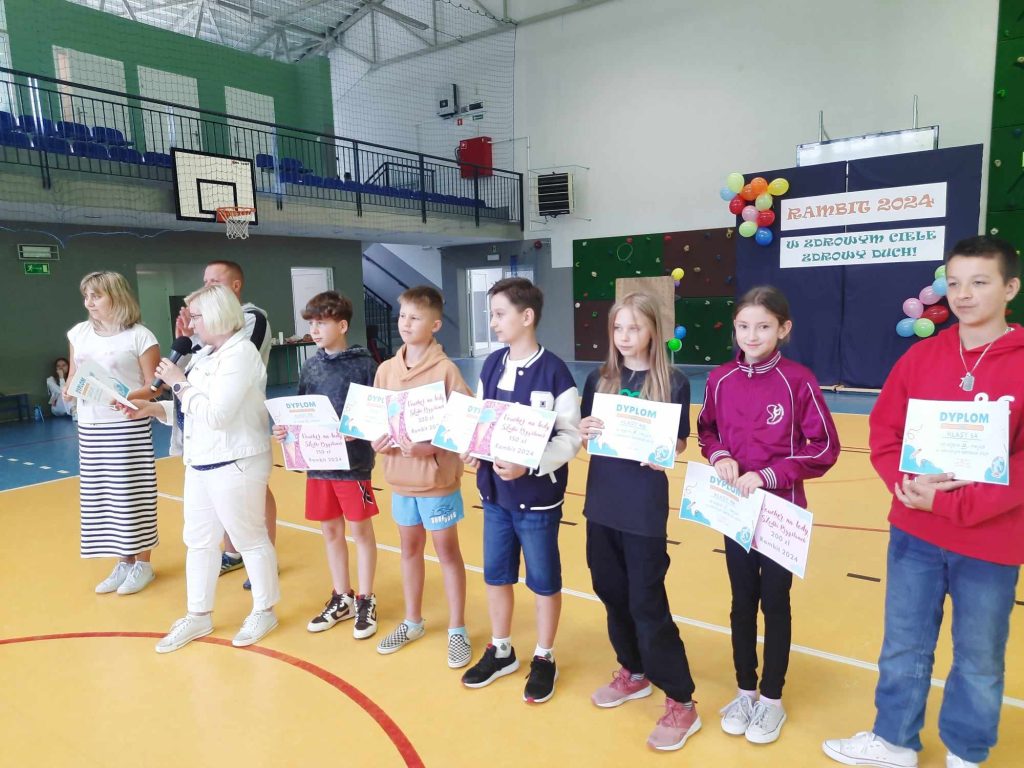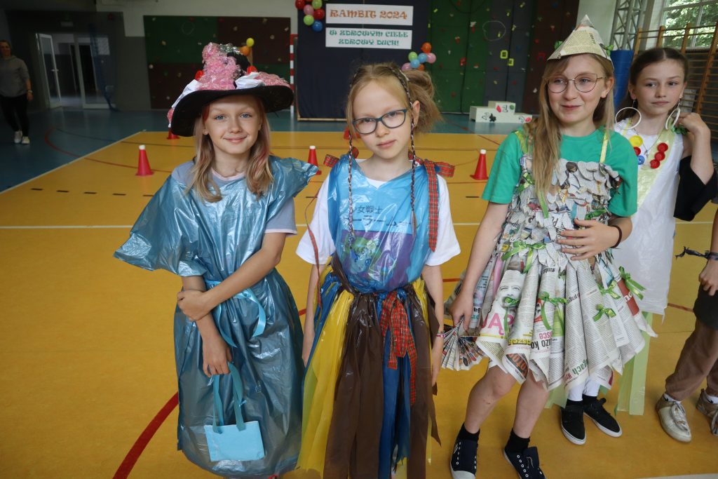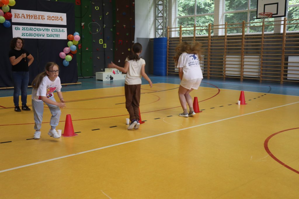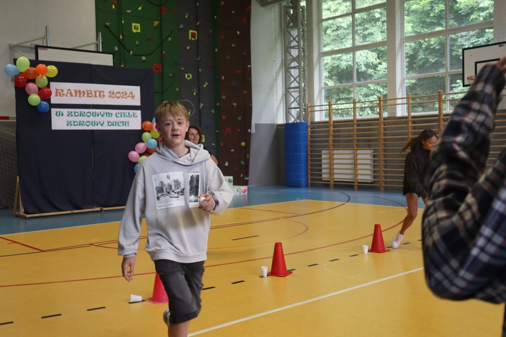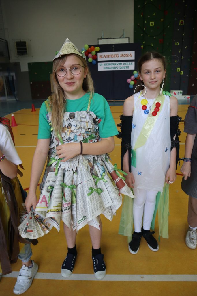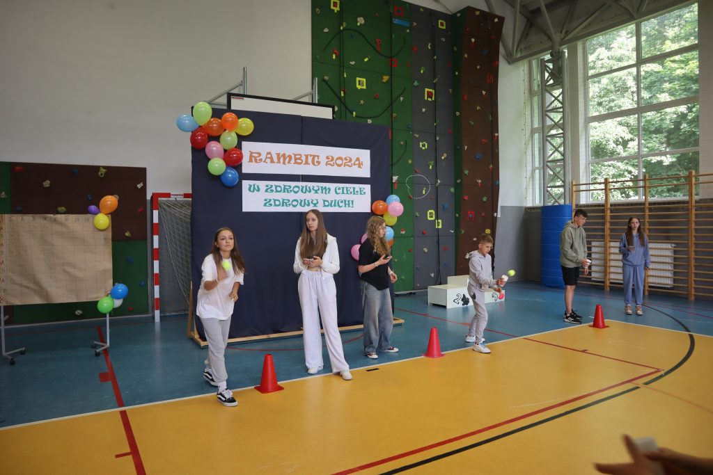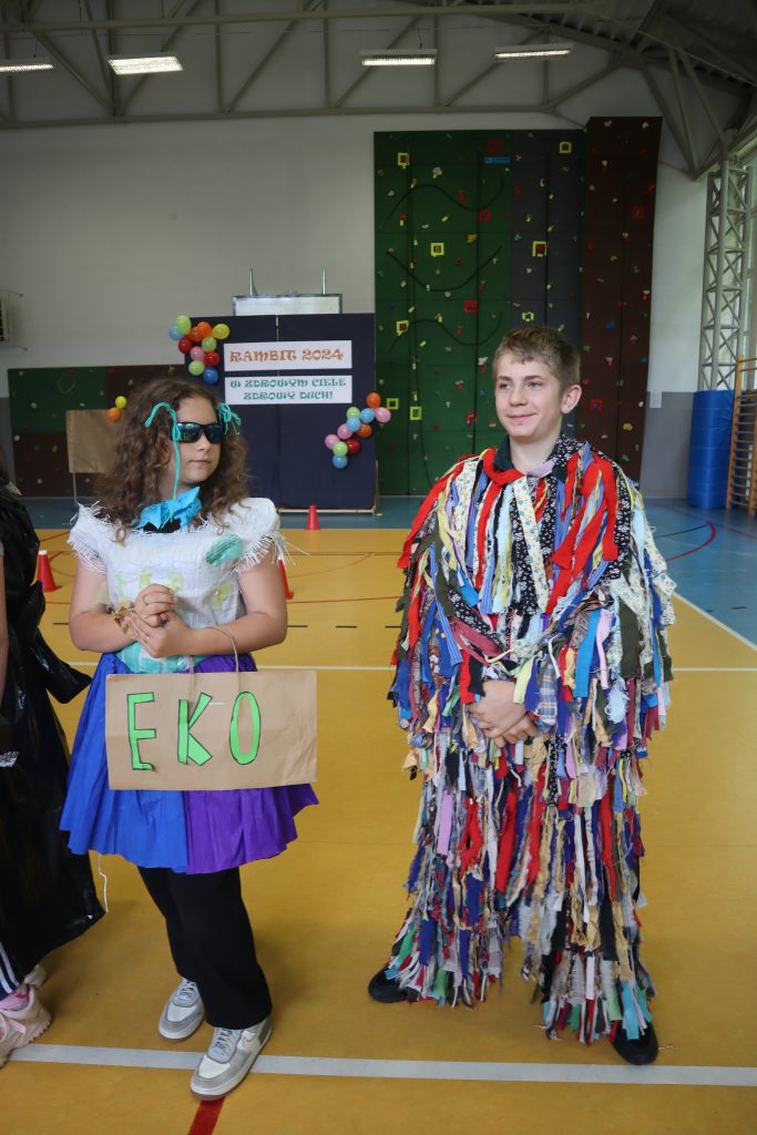 RAMBIT – zmagania sportowe z okazji dnia dziecka. W tym roku odbywały się pod hasłem „W zdrowym ciele zdrowy duch”. Chcieliśmy zwrócić szczególną uwagę na zdrowy styl życia – poprzez konkurencje sportowe, test wiedzy oraz przygotowywanie przekąsek, uczniowie dowiedzieli się że to co robimy ma duży wpływ na to jak się czujemy. Kolejnym elementem bardzo istotnym dla naszej planety jest ekologia na którą również poświęciliśmy część naszej uwagi – uczniowie przygotowywali stroje z surowców wtórnych. To przedsięwzięcie było możliwe do realizacji dzięki firmie Żywiec Zdrój, której z tego miejsca serdecznie dziękujemy.