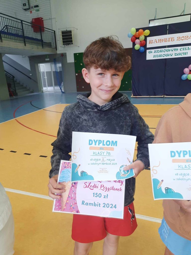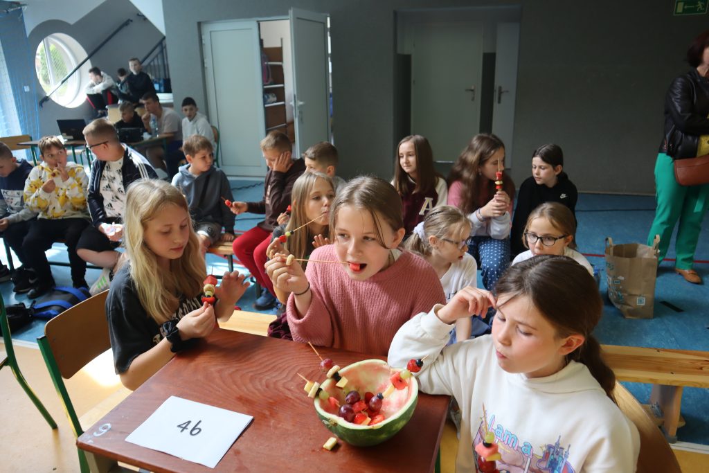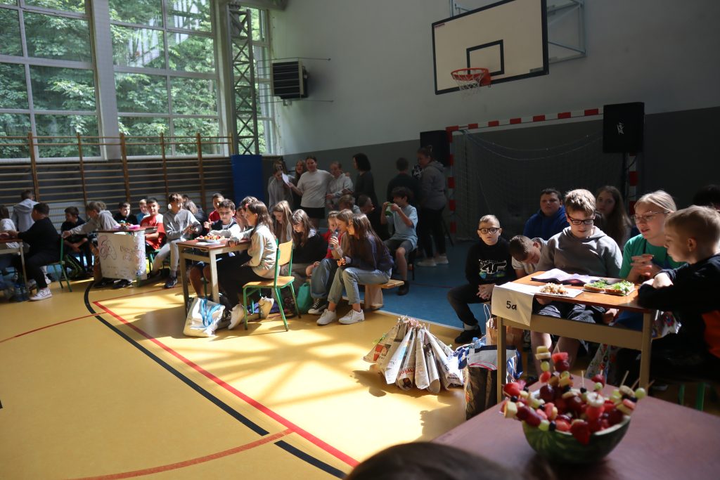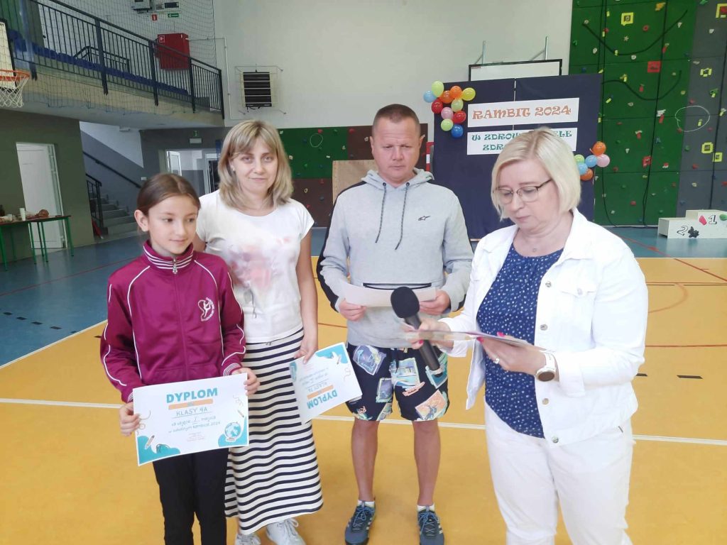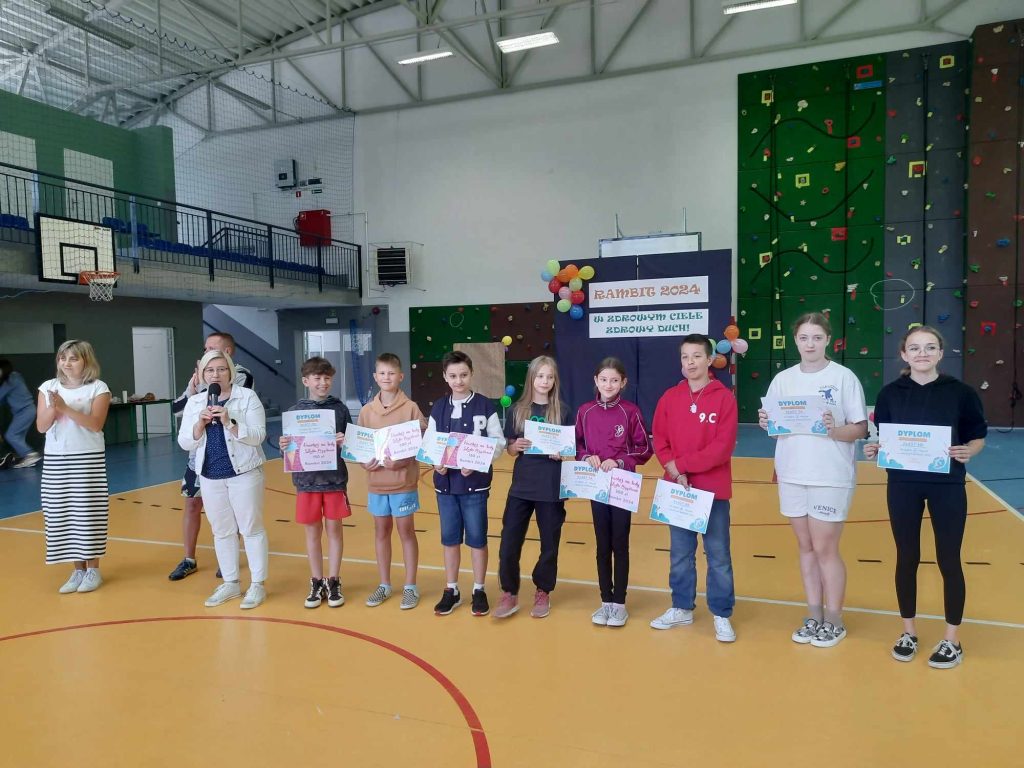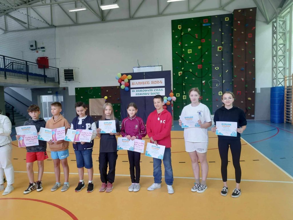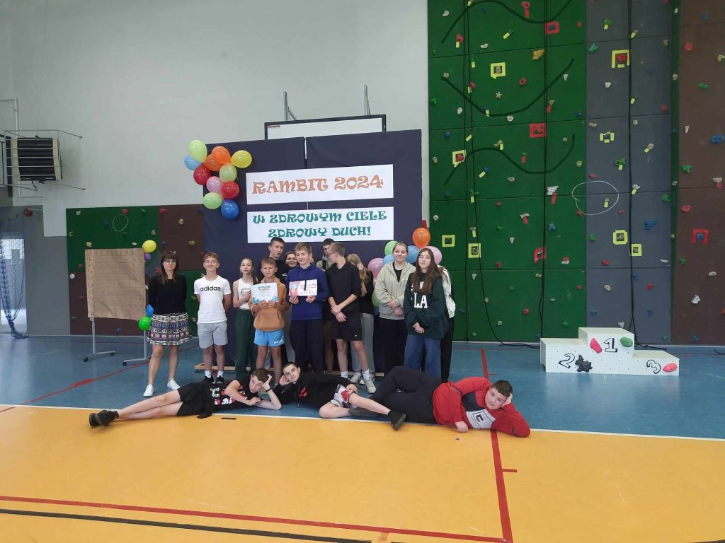 RAMBIT – zmagania sportowe z okazji dnia dziecka. W tym roku odbywały się pod hasłem „W zdrowym ciele zdrowy duch”. Chcieliśmy zwrócić szczególną uwagę na zdrowy styl życia – poprzez konkurencje sportowe, test wiedzy oraz przygotowywanie przekąsek, uczniowie dowiedzieli się że to co robimy ma duży wpływ na to jak się czujemy. Kolejnym elementem bardzo istotnym dla naszej planety jest ekologia na którą również poświęciliśmy część naszej uwagi – uczniowie przygotowywali stroje z surowców wtórnych. To przedsięwzięcie było możliwe do realizacji dzięki firmie Żywiec Zdrój, której z tego miejsca serdecznie dziękujemy.