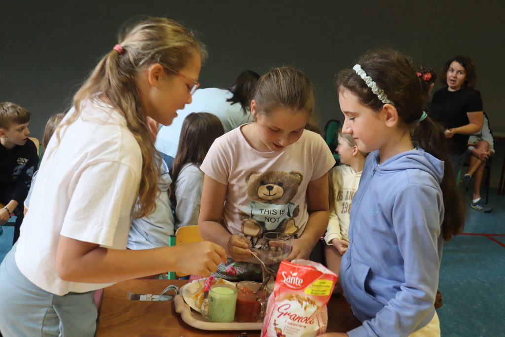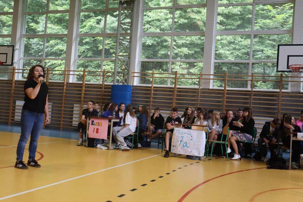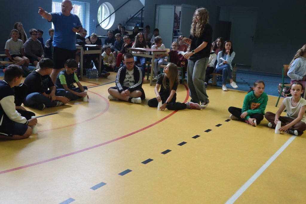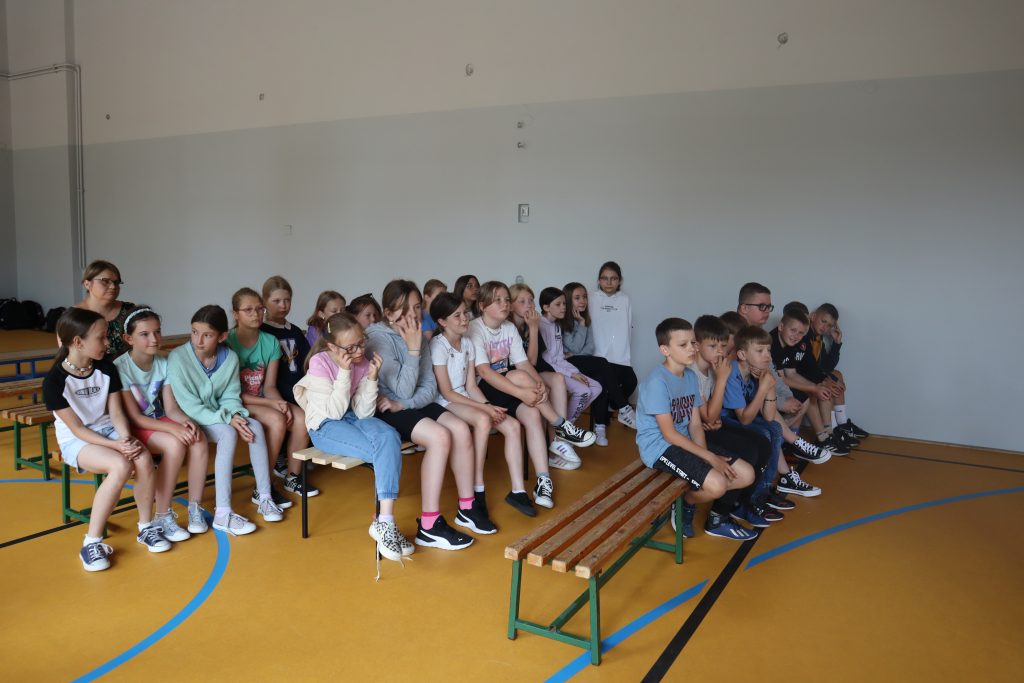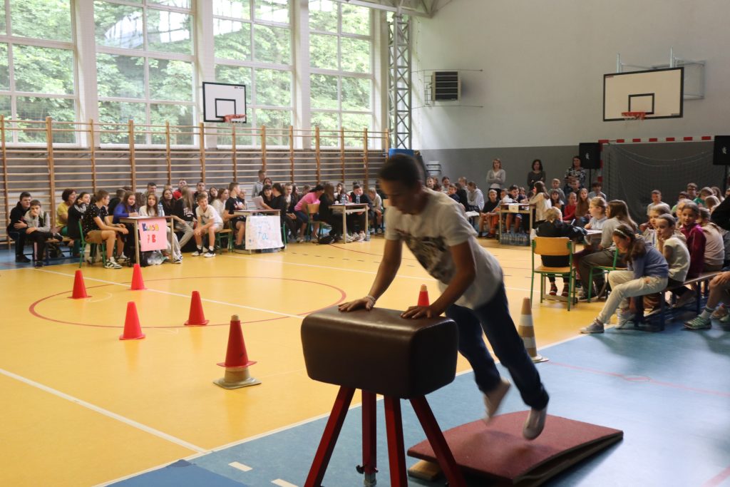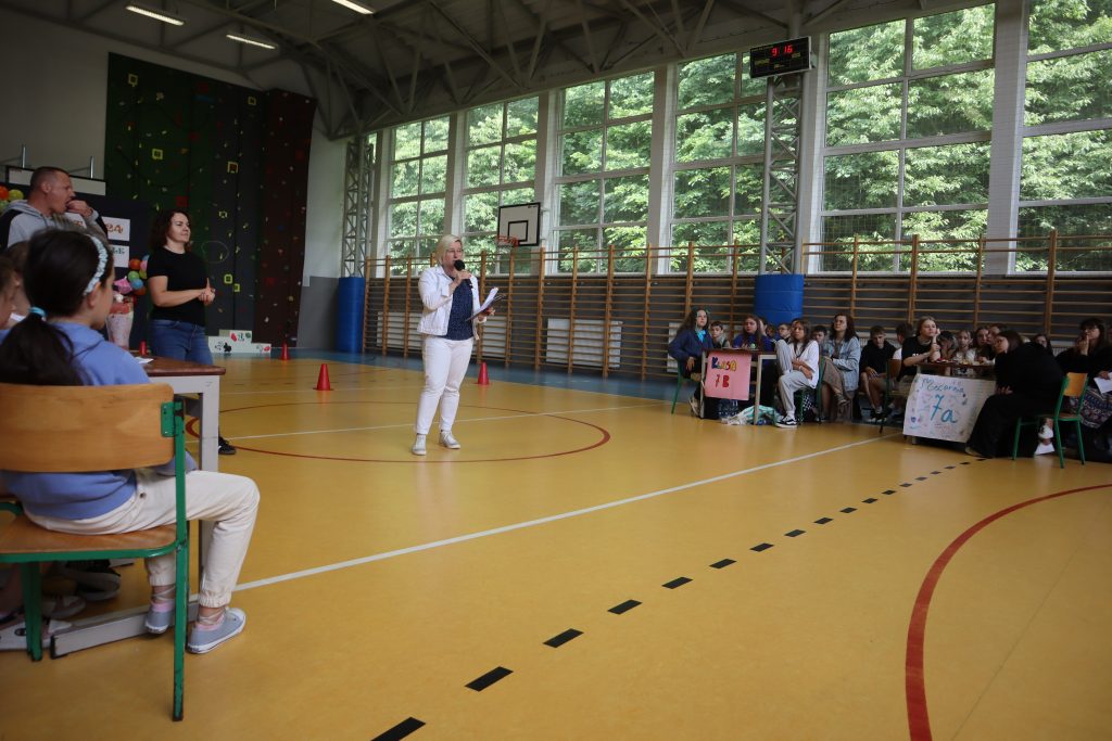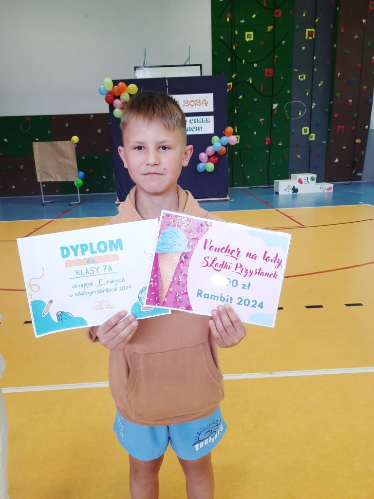 RAMBIT – zmagania sportowe z okazji dnia dziecka. W tym roku odbywały się pod hasłem „W zdrowym ciele zdrowy duch”. Chcieliśmy zwrócić szczególną uwagę na zdrowy styl życia – poprzez konkurencje sportowe, test wiedzy oraz przygotowywanie przekąsek, uczniowie dowiedzieli się że to co robimy ma duży wpływ na to jak się czujemy. Kolejnym elementem bardzo istotnym dla naszej planety jest ekologia na którą również poświęciliśmy część naszej uwagi – uczniowie przygotowywali stroje z surowców wtórnych. To przedsięwzięcie było możliwe do realizacji dzięki firmie Żywiec Zdrój, której z tego miejsca serdecznie dziękujemy.