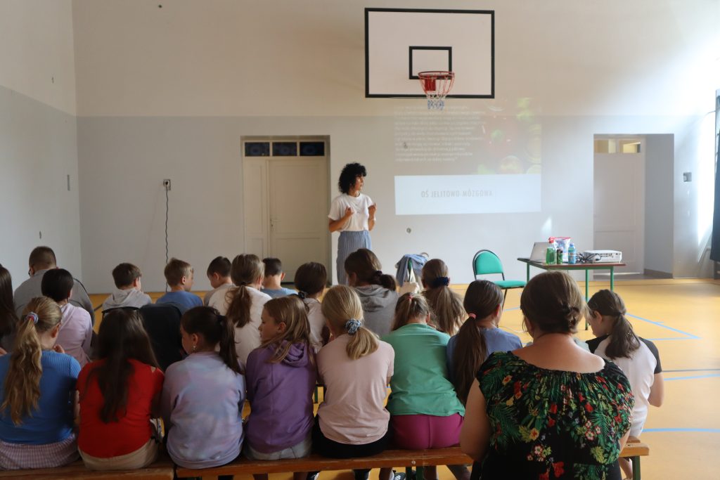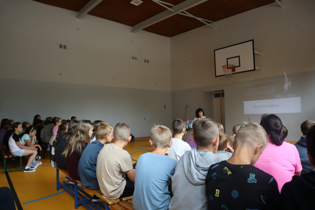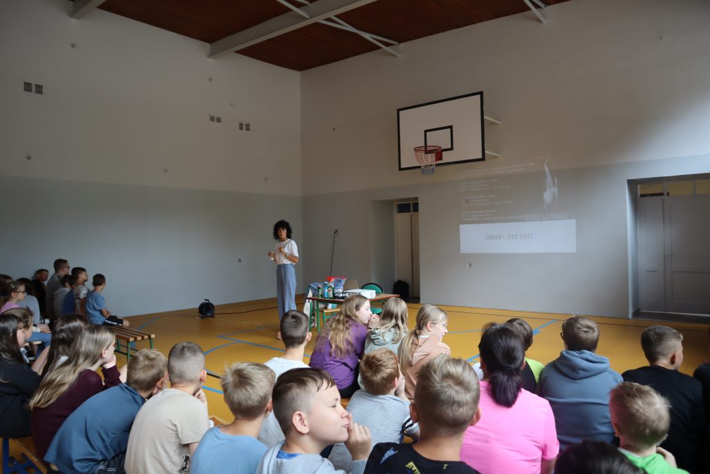 W ramach projektu „W zdrowym ciele zdrowy duch” realizowanego przy współpracy firmy Żywiec Zdrój udało nam się zorganizować spotkanie z panią dietetyk Alicja Knopek, podczas którego uczniowie z klas IV-VII dowiedzieli się jak jeść i jakich produktów unikać aby cieszyć się zdrowym i długim życiem.