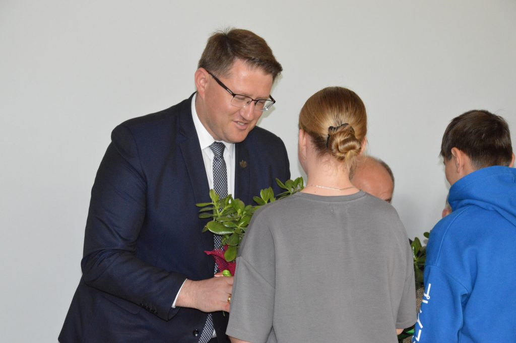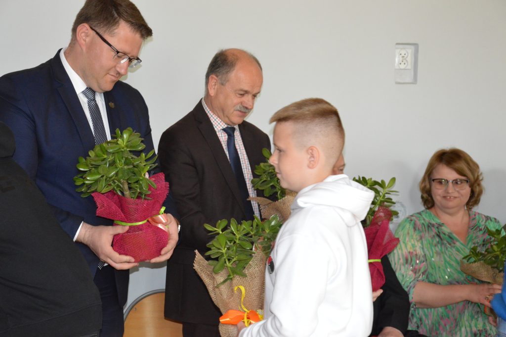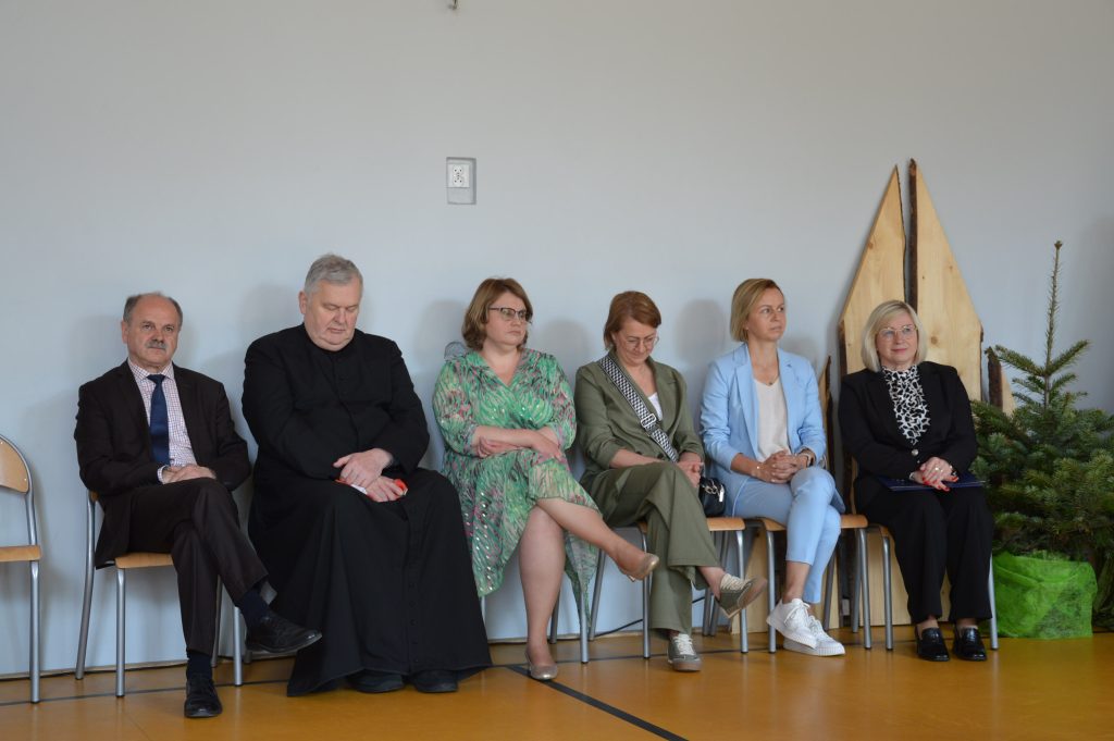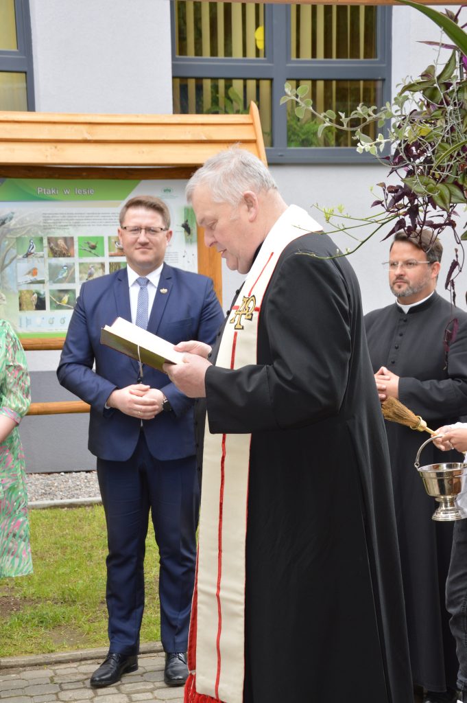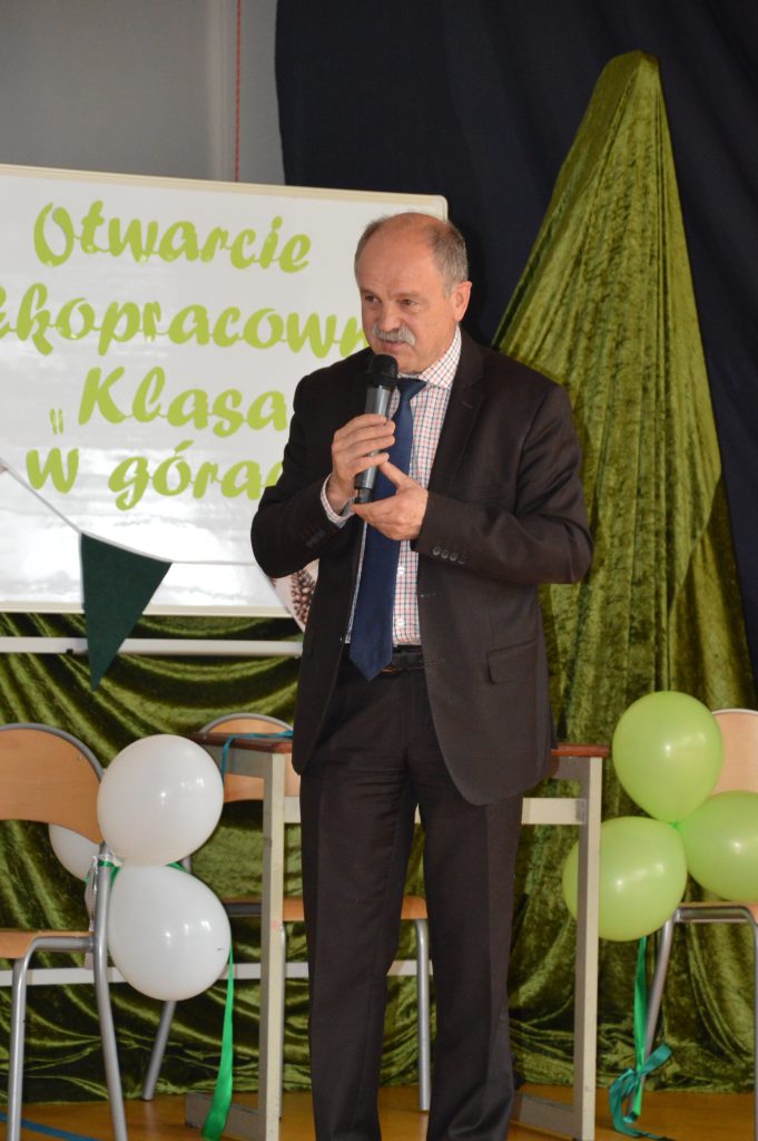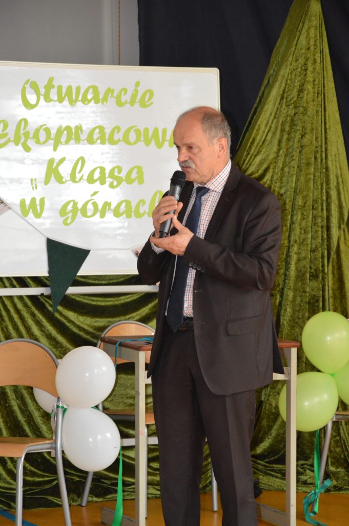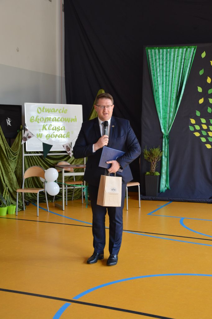 W piątek, 30 maja, w naszej szkole odbyła się uroczystość otwarcia „Ekopracowni pod chmurką”. Na początku pani dyrektor serdecznie powitała wszystkich zebranych gości, w tym Prezesa Zarządu Wojewódzkiego Funduszu Ochrony Środowiska w Katowicach, pana wójta Piotra Tyrlika oraz zgromadzonych gości dziękując za wsparcie i zaangażowanie w realizację projektu.