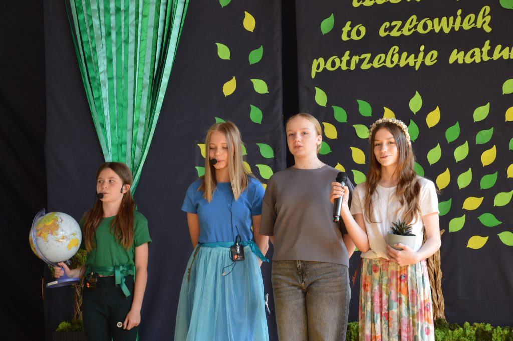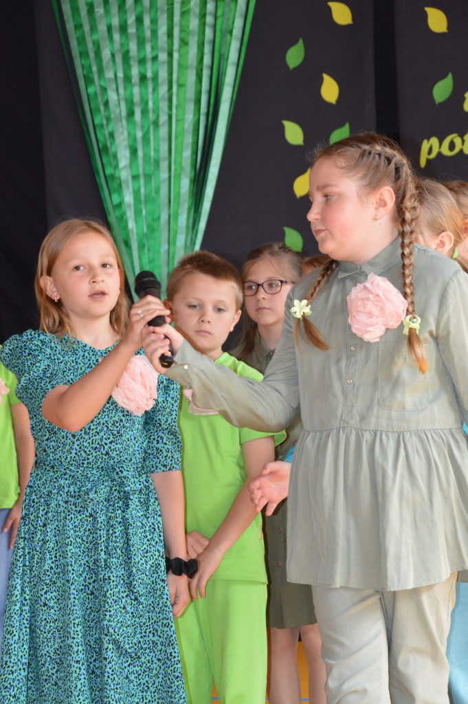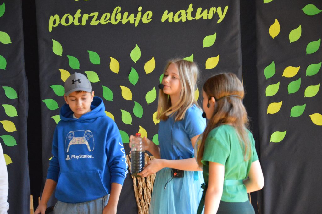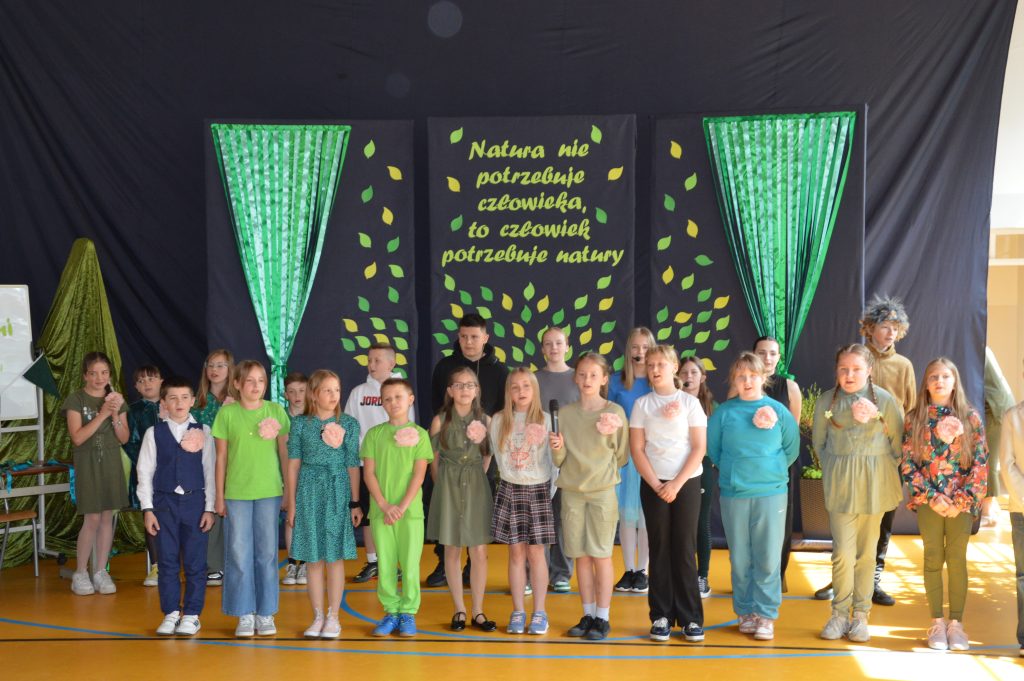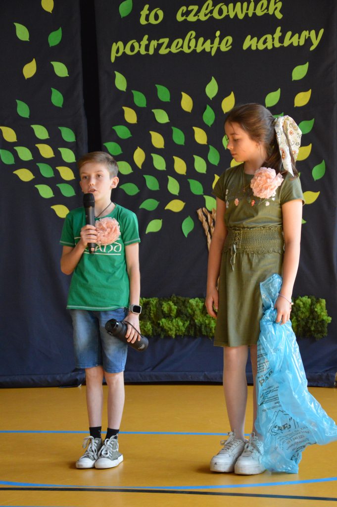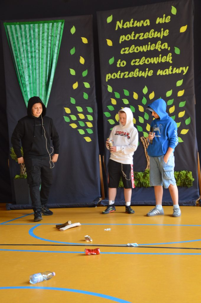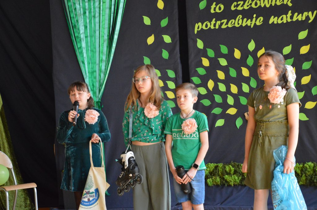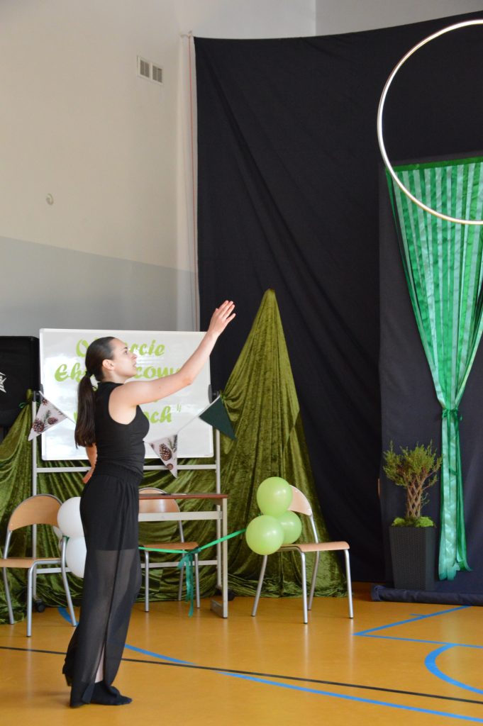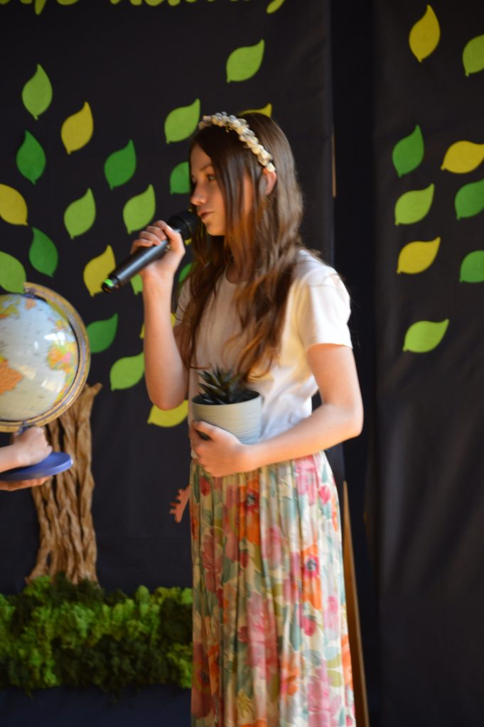 Następnie uczniowie zaprezentowali przygotowany specjalnie na tę okazję program artystyczny promujący postawy proekologiczne. Były wiersze, scenki tematyczne, taniec oraz piosenki w wykonaniu klasy 3b, które spotkały się z entuzjastycznym przyjęciem zgromadzonej publiczności.