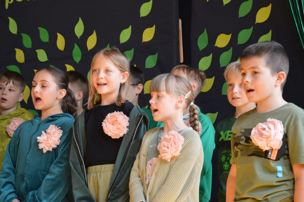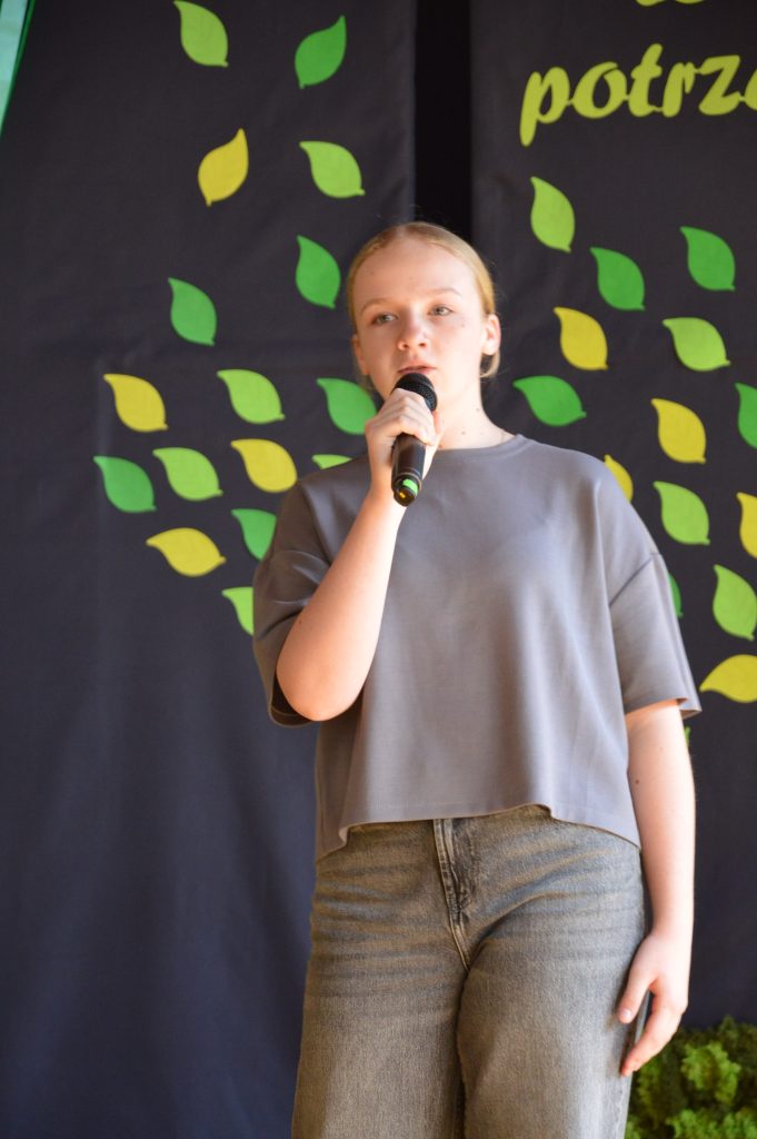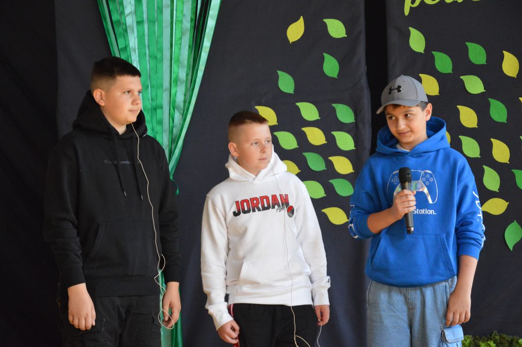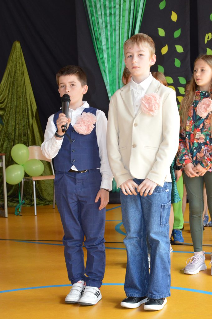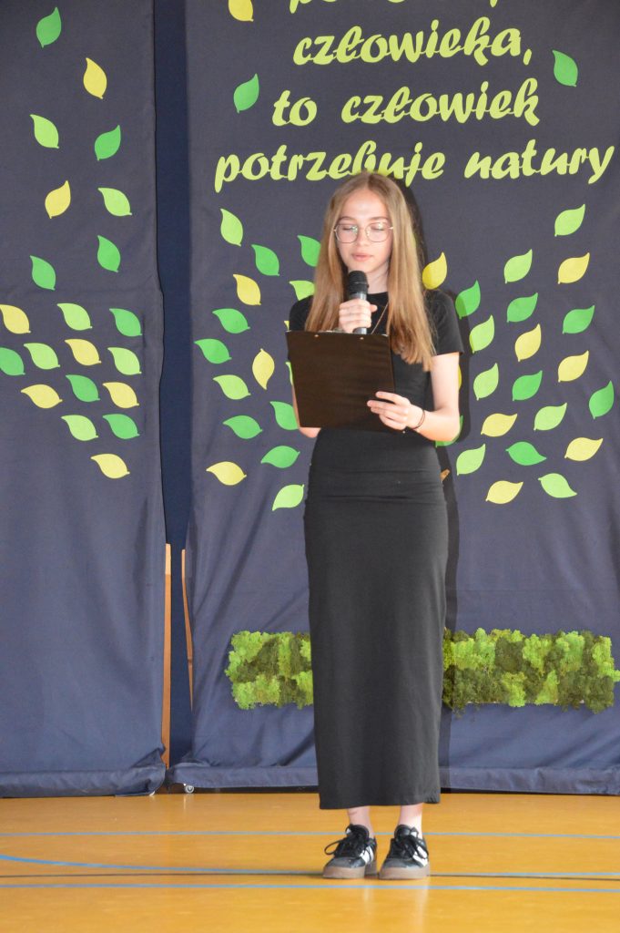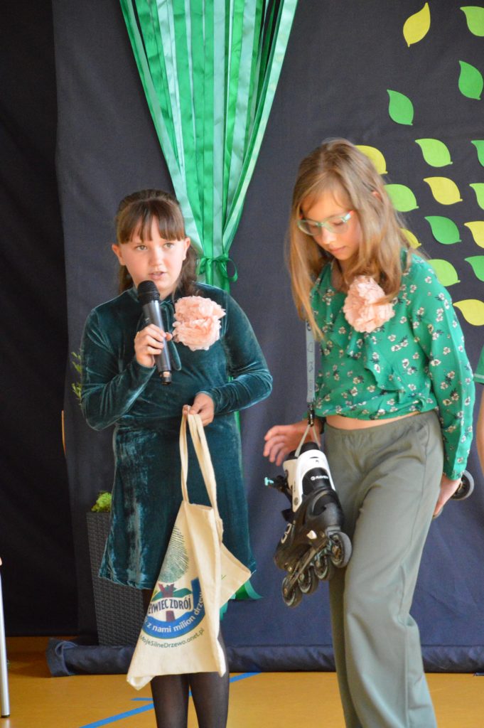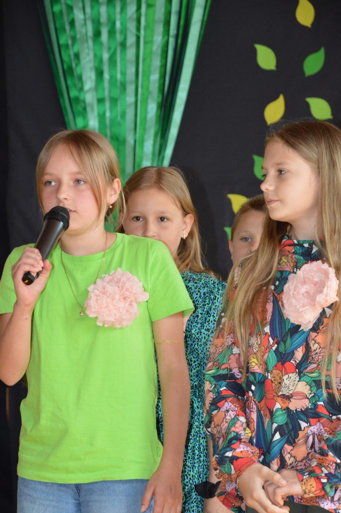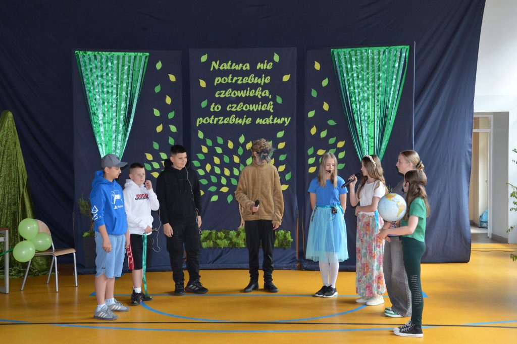 Następnie uczniowie zaprezentowali przygotowany specjalnie na tę okazję program artystyczny promujący postawy proekologiczne. Były wiersze, scenki tematyczne, taniec oraz piosenki w wykonaniu klasy 3b, które spotkały się z entuzjastycznym przyjęciem zgromadzonej publiczności.
