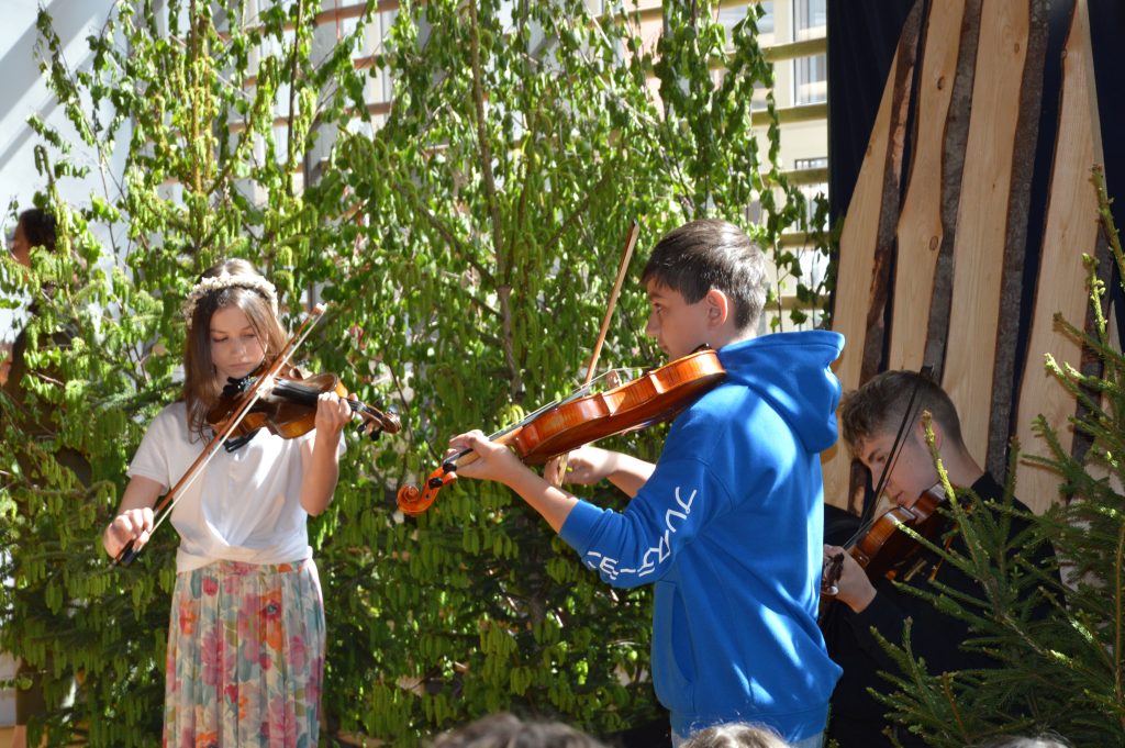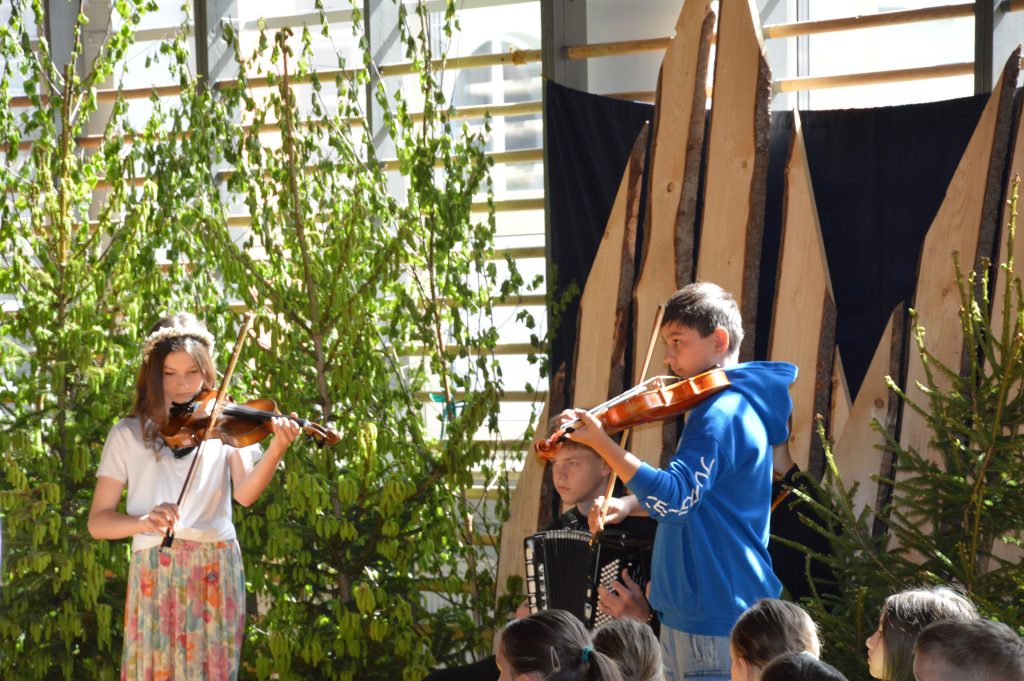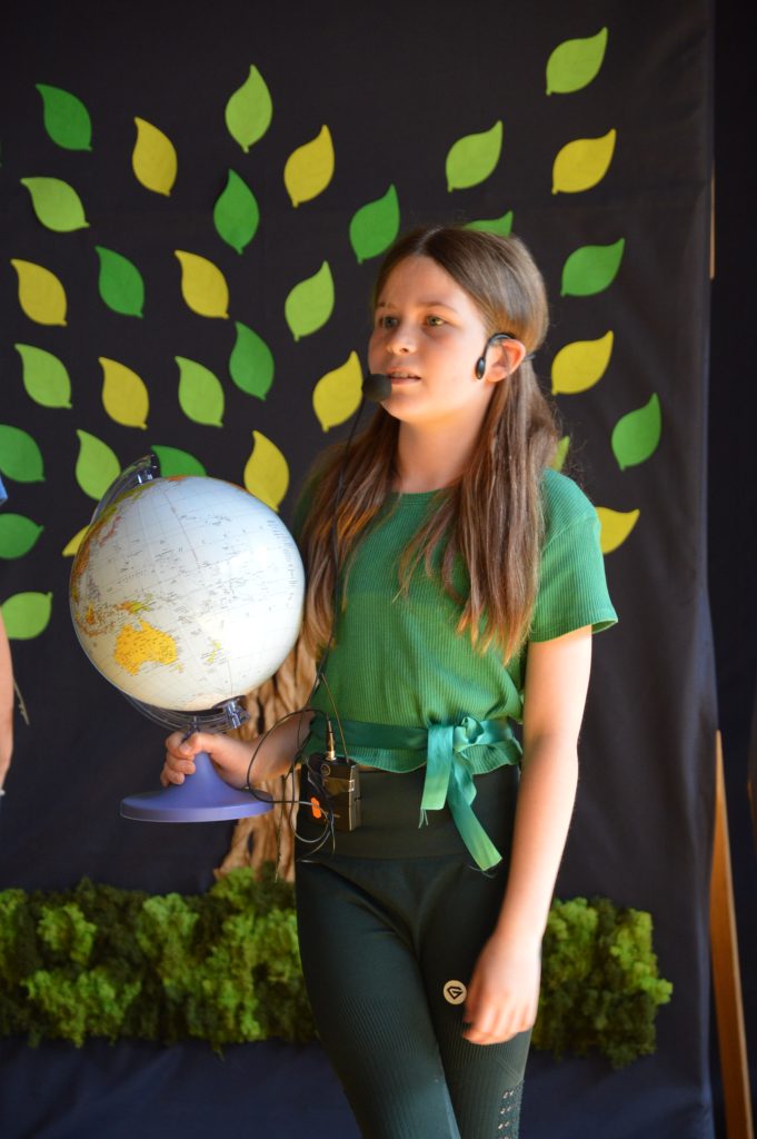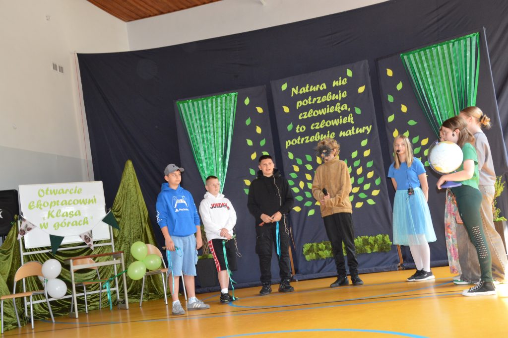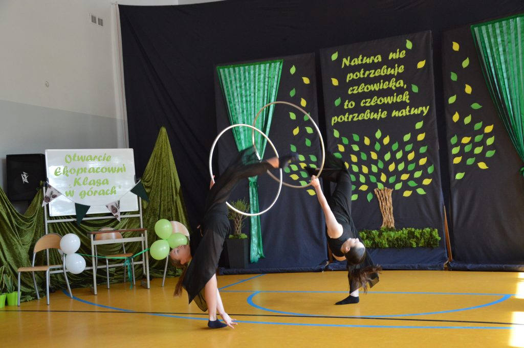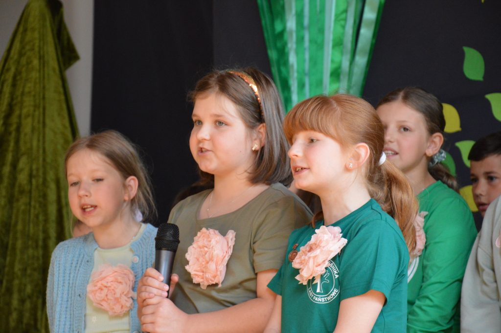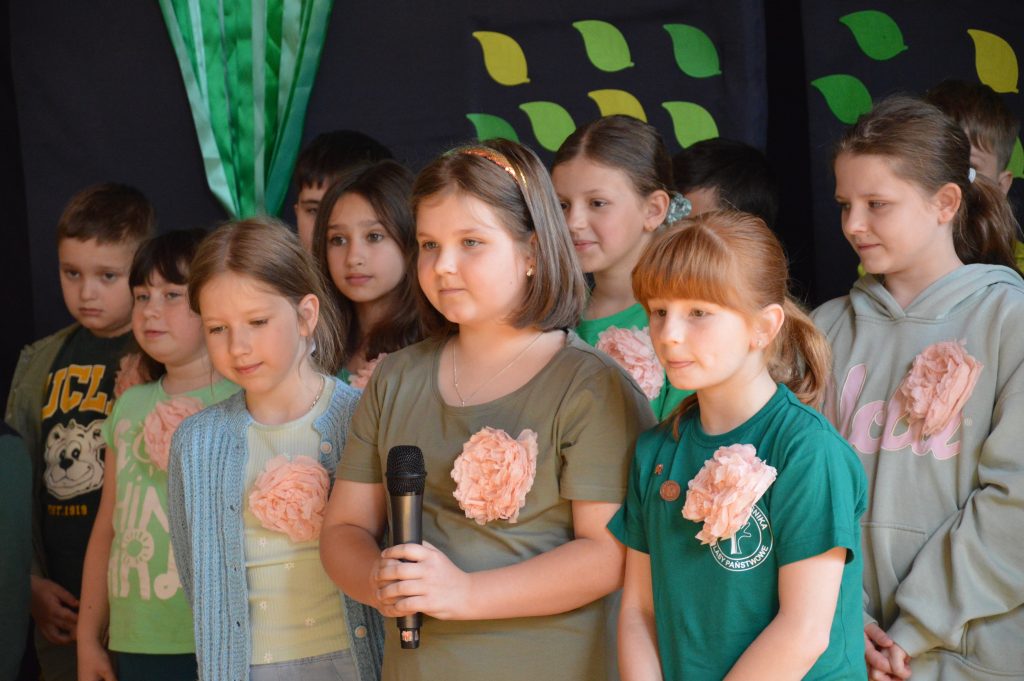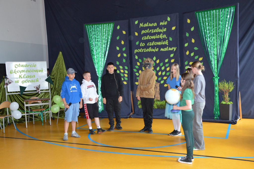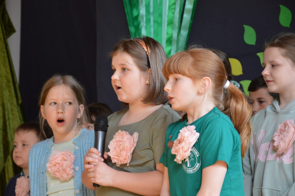 Następnie uczniowie zaprezentowali przygotowany specjalnie na tę okazję program artystyczny promujący postawy proekologiczne. Były wiersze, scenki tematyczne, taniec oraz piosenki w wykonaniu klasy 3b, które spotkały się z entuzjastycznym przyjęciem zgromadzonej publiczności.